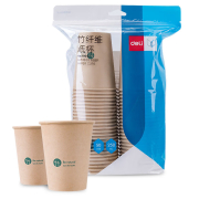 得力19207 一次性紙杯 250m竹纖維本色杯子/水杯 加厚隔熱 50只/袋